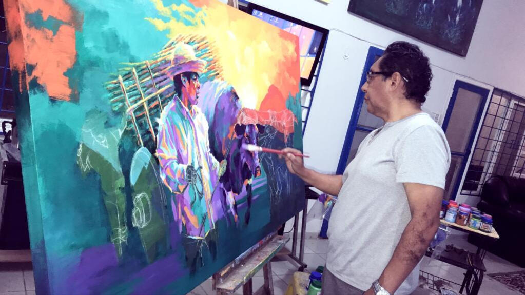 Here in Santa Cruz de la Sierra, he decided to devote himself entirely to art. The need to teach, his natural talent for portraiture and his mastery of the techniques of pencil, charcoal, sepia, chalk pastel, acrylic, oil and watercolor quickly opens the doors to the artistic world and later his artwork begins to take on an exponential value. Then he dabbles in painting murals.
